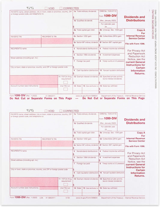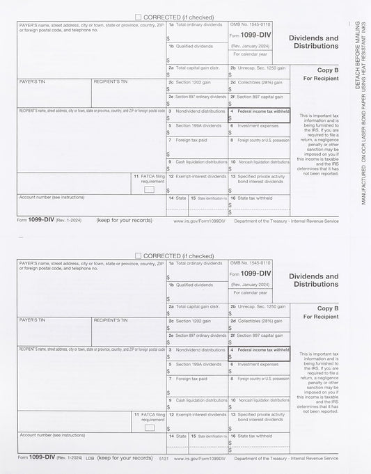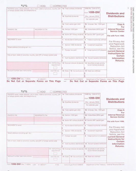 2024 1099-DIV Copy A Forms, 100 Pack