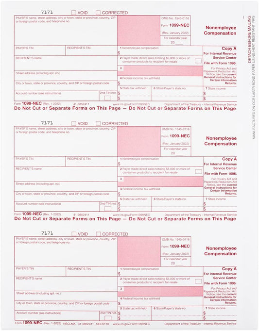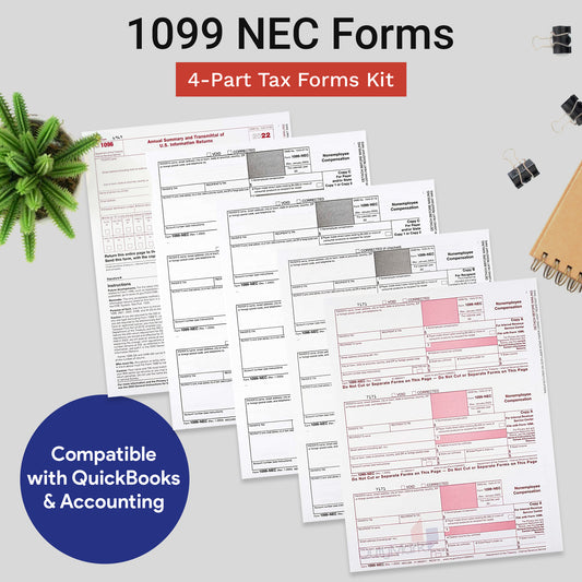 2022 1099-NEC Forms, 4 Part, 25 Pack, QuickBooks Ready