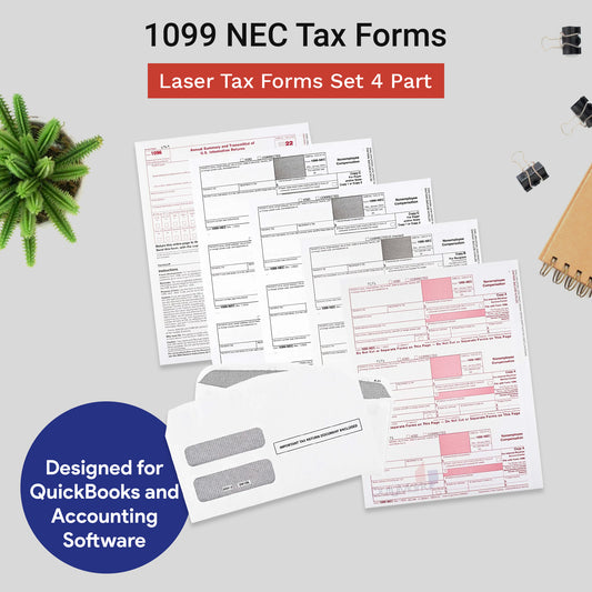 2024 1099-NEC & 1099-MISC Forms, 4 Part Combo with Envelopes