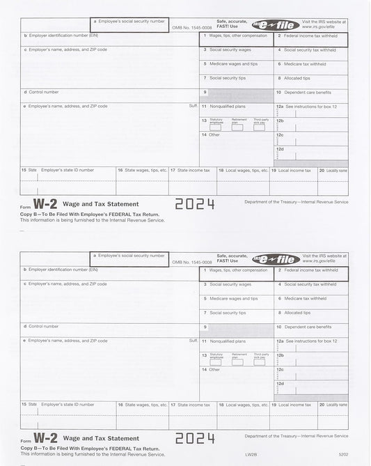 2024 W-2 Forms, 6-Part Kit for 25 Employees with W-3 Transmittal