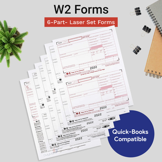 2024 W-2 Forms, 6-Part, 25 Employees, QuickBooks Compatible, Includes 25 Envelopes