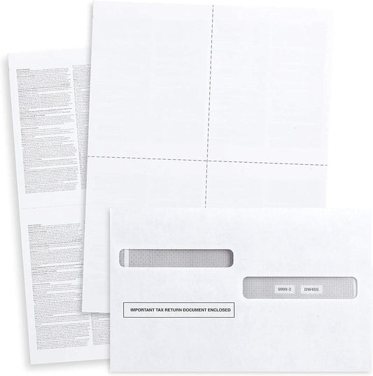 2021 W-2 4-Up Blank Laser Tax Forms Set, Pack of 50 with Self-Seal Envelopes