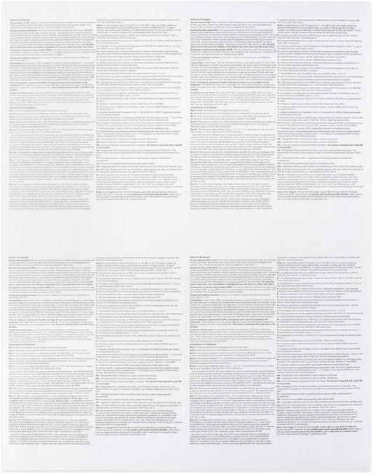 2024 Blank W-2 3-Up Tax Forms, 50 Employee Set, with Back Instructions & Self-Seal Envelopes